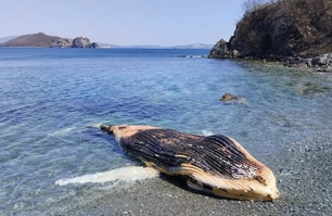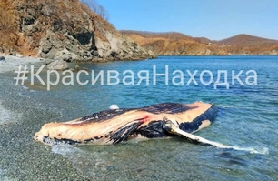 Тушу кита выбросило на берег в Находке