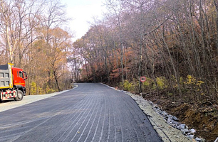 На дороге, ведущей к детскому центру «Маяк», укладывают асфальт