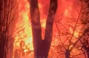 Автомобиль врезался в опору освещения и загорелся в Приморье (Видео)