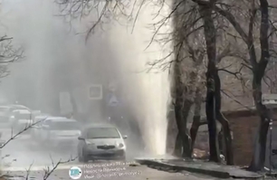 «Гейзер» высотой 20 метров обрушился кипятком на улицу во Владивостоке