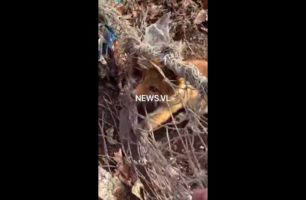 Лисёнок запутался в прогнившей сетке на свалке в лесу Владивостока