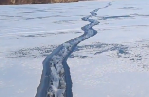 "Живая" полуметровая трещина длиною "за горизонт" образовалась на льду Амурского залива (видео)