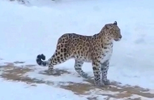 Леопардиха и её котёнок прогулялись во дворе частного дома в Приморье
