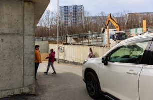 При этом дорога к комплексу из семи корпусов осталась без пешеходной инфраструктуры — люди идут вплотную к машинам