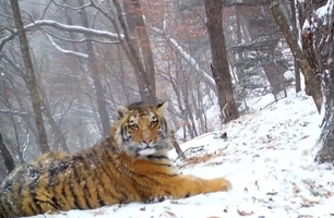 Фотоловушка в Приморье запечатлела тигренка, встретившего свой первый снег