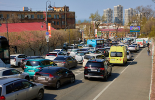 Таксиста, который объехал пробку по тротуару во Владивостоке, наказали