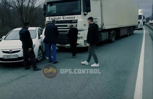 Грузовик врезался в легковушку, тем самым перекрыв движение полностью