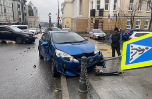Легковушка «намоталась» на знак: жёсткое ДТП произошло в центре Владивостока